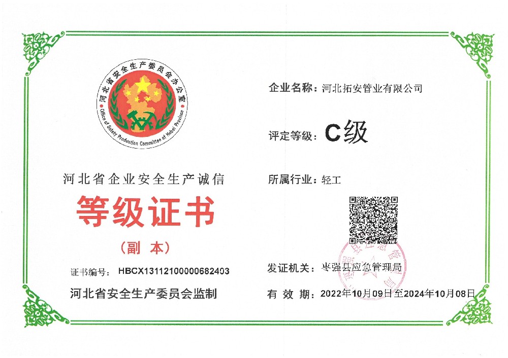 河北省企业安全生产诚信证书